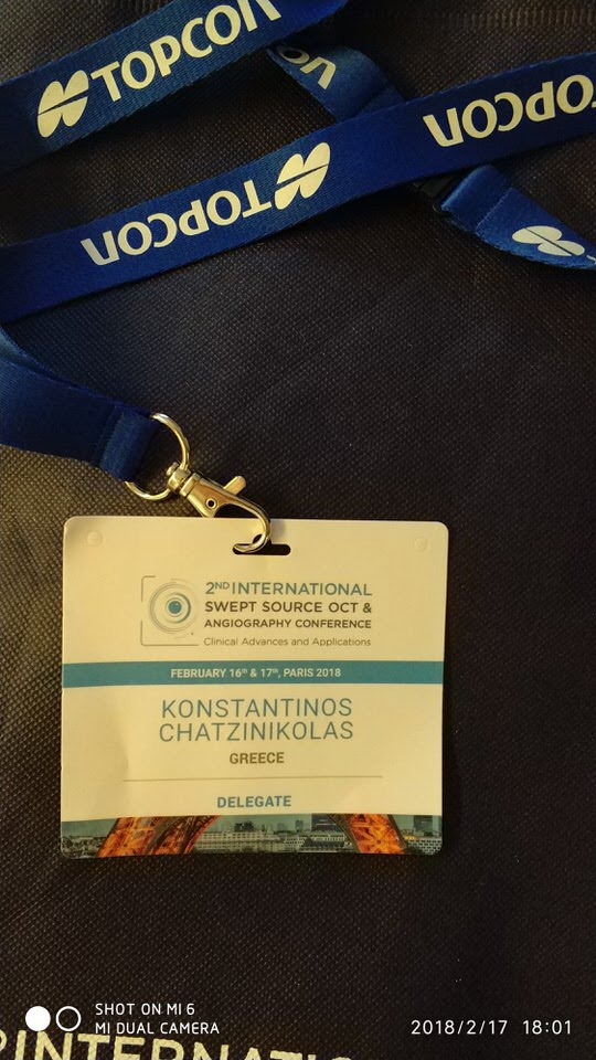 Συμμετοχή μου στο 2ο διεθνές συνέδριο οπτικής τομογραφίας συνοχής (OCT ) KAI OCT swept source ΨΗΦΙΑΚΗΣ ΑΓΓΕΙΟΓΡΑΦΙΑΣ –Κλινικές εξελίξεις και εφαρμογές , που έγινε στις 16 - 17/2/2018 στο Παρίσι -Γαλλία.