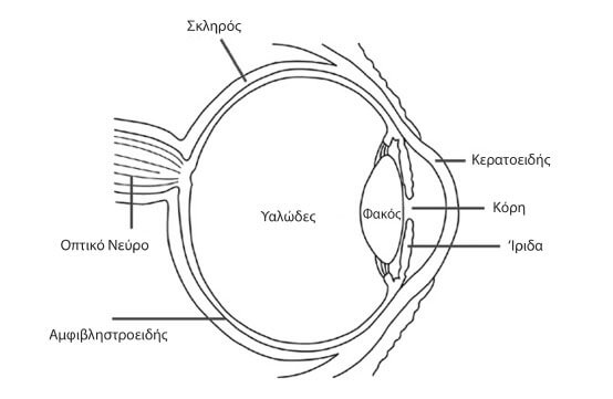 Ο φακός είναι ένας διαφανής ιστός πίσω από την ίριδα, το χρωματιστό τμήμα του ματιού. Ο φακός βοηθάει το φως να εστιάζεται στο πίσω μέρος του εσωτερικού του ματιού - τον αμφιβληστροειδή - και έτσι σχηματίζεται η εικόνα. Το παραπάνω διάγραμμα δείχνει τα βασικά μέρη του ματιού.
